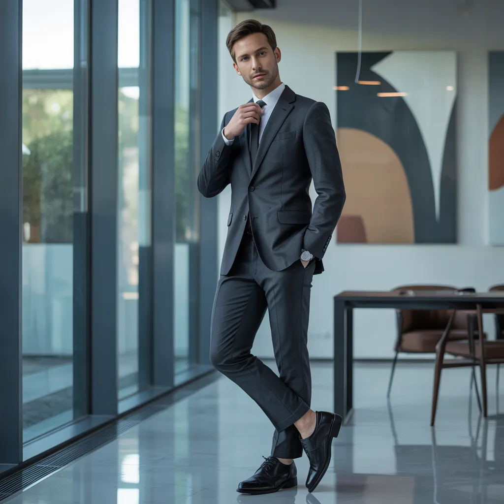 Dress shoes are fundamental components of a sophisticated wardrobe, and the way they are matched can profoundly affect your complete look. When selecting formal shoes, it is important to take into account the occasion's dress code and color palette. To illustrate this point, traditional black leather oxfords work harmoniously with tailored suits, delivering a refined and put-together aesthetic. Warm-toned brown leather shoes, by comparison, can add warmth and versatility to navy or gray suits, especially in business-casual settings.